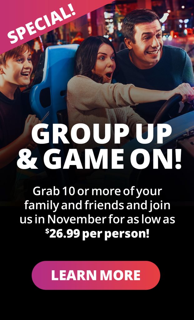 Planning a school field trip, grad night, sports award ceremony, fundraiser, or lock-in? Our 90,000 square foot family entertainment center is the perfect venue for your event. Our staff will help you curate the best package for your guests with a range of fun activities for them to enjoy. Plus, every package includes unlimited food and soft drinks from our contactless buffet until 9pm, keeping your guests full of energy and ready to play for hours.